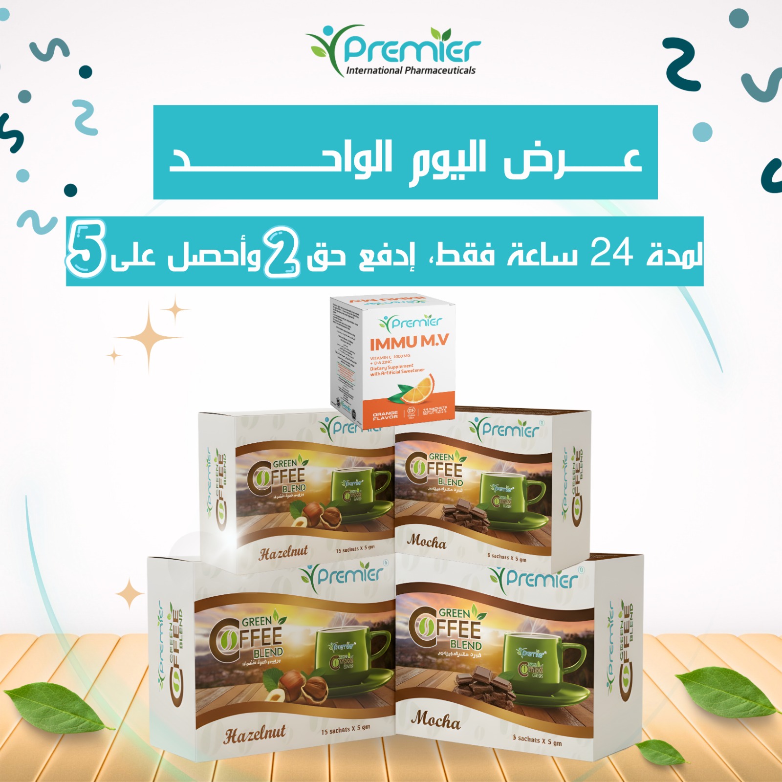 علبتين قهوة كبار عليهم علبتين قهوة صغيرين هدية+علبة اميو مالتى فيتامين هدية